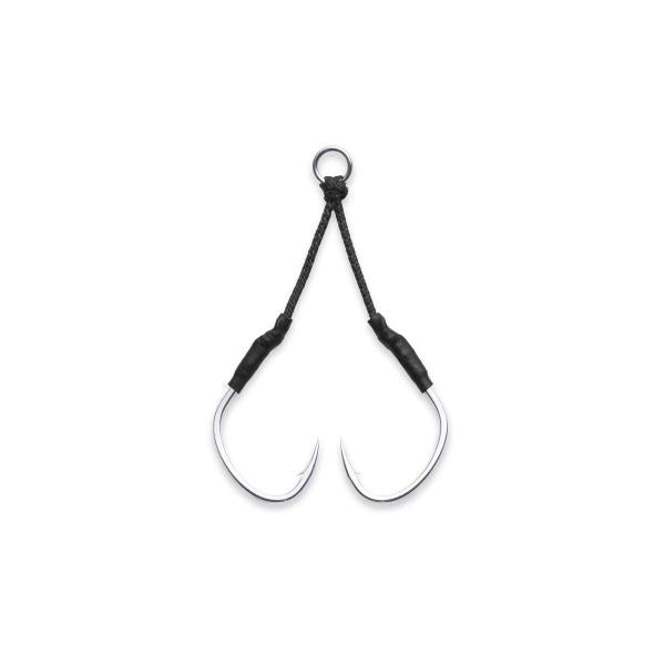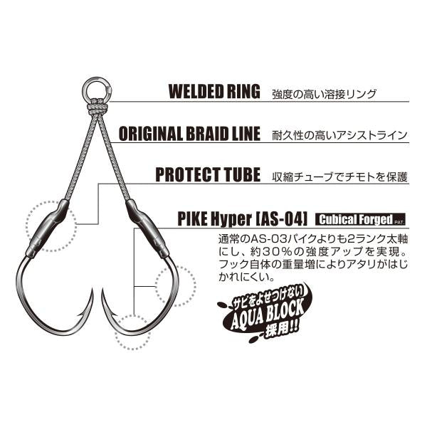 ライトタックルジギングの絶対的なスタンダードと言えるアシストフック「DJ-88ツインパイク」。そのバーサタイルなモデルではこれまでカバーできなかった、ヘビータックルや大物ターゲットに対応する強化版ツインパイク。通常よりも2ランク太軸で約30%強度アップしたフック「Pike Hyper」を採用し、大型青物・大型根魚にハイドラグで挑むアングラ―に応えるヘビー仕様アシストです。